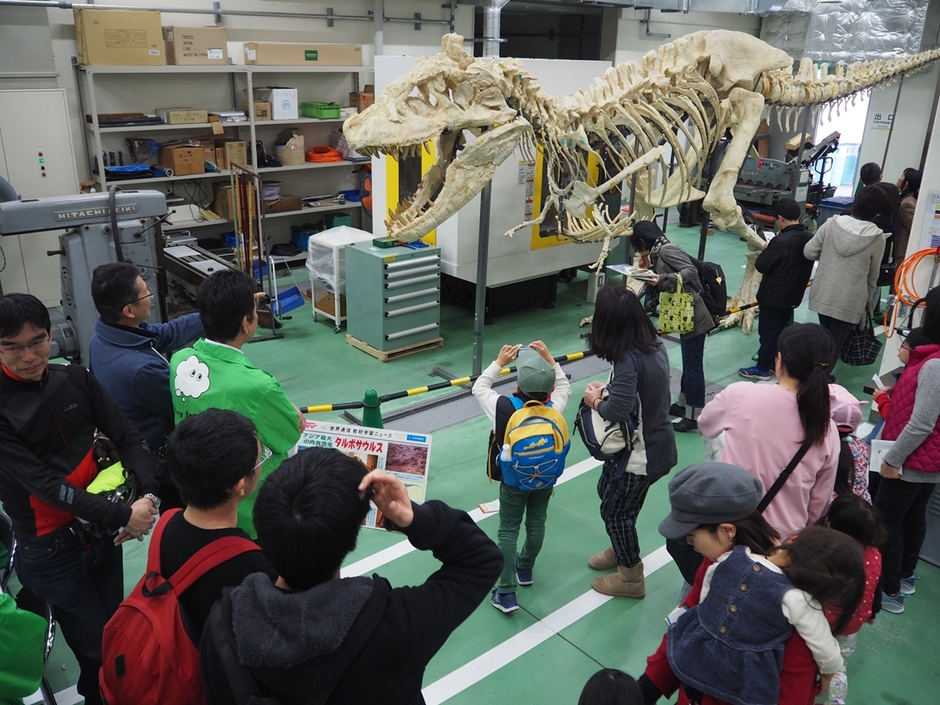 タルボサウルスはこの日だけの限定公開で、3月中旬からはA1号館1階のエントランスホールで公開します。