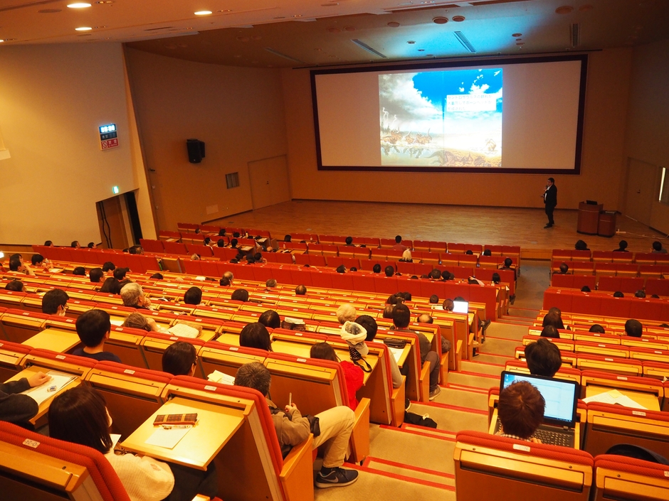 シンポジウムはC1号館8階の理大ホールで開催。筑波大学の田中康平助教、理化学研究所の平沢達矢研究員、理大の千葉謙太郎助教、東京大学の久保泰特別研究員が登壇し、最新の恐竜研究について講演しました。