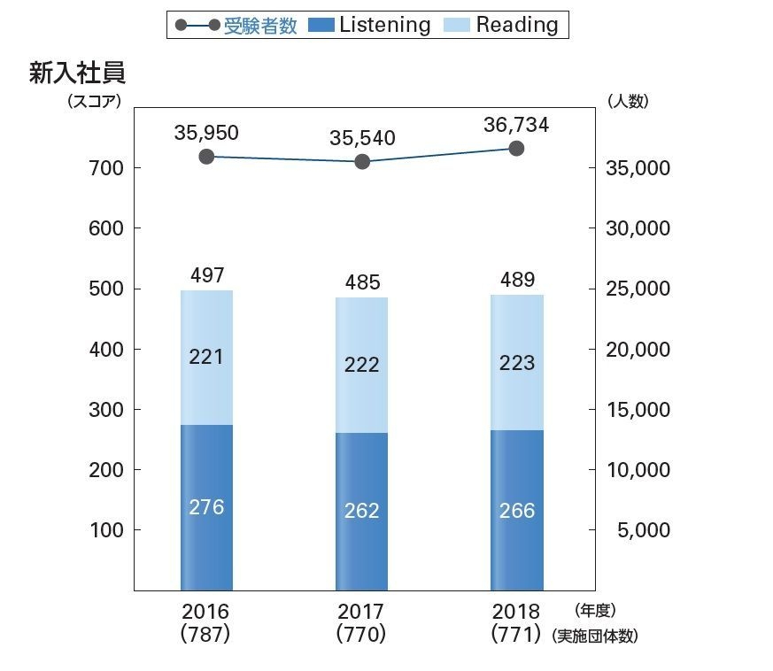 TOEIC(R) Listening & Reading団体特別受験制度 2018年度新入社員の平均スコアは489点