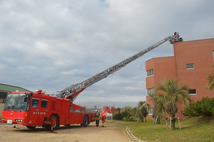多発している関東近県の地震や台風直撃に備え、千葉科学大学(千葉県銚子市潮見町)は2019年12月11日、銚子市消防本部と千葉市消防局の協力を得て、大学消防計画に基づく総合防災訓練を、マリーナキャンパス危機管理学部棟周辺で実施しました。防災意識高揚と各種消防設備の操作習熟などを目的とし、教職員、学生、関係者ら300人以上が参加しました。