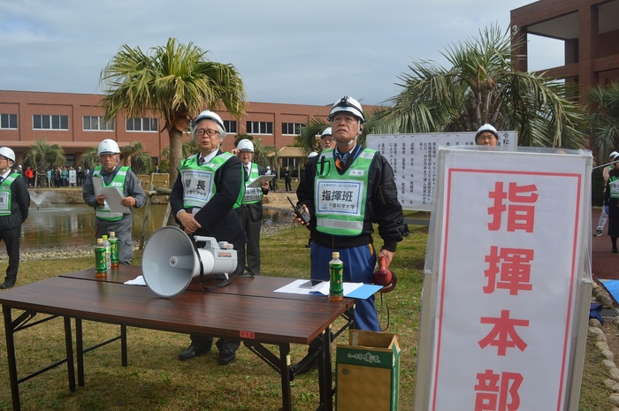 千葉県東方沖を震源とするマグニチュード6.8の地震が発生し、銚子市では震度6弱を観測、津波は発生しませんでしたが、危機管理学部2階実習室から出火し、炎が天井まで達して延焼の恐れがあり、倒れたロッカーの下敷き、火傷などにより多数の負傷者が出た模様-という想定でした。