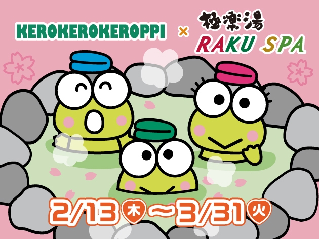 株式会社極楽湯(本社:東京都千代田区、代表取締役社長:新川 隆丈)は、2020年2月13日(木)より直営30店舗で株式会社サンリオのキャラクター「けろけろけろっぴ」とのコラボレーションキャンペーン第2弾を開催いたします。