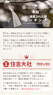 なお、神社の最寄りでない駅で唯一TOP10にランクインしたのは6位「大阪阿部野橋」駅です。1月2日・3日の検索数が非常に多く、近鉄百貨店「あべのハルカス近鉄本店」の初売り、クリアランスセールによる買い物客が多く訪れたのではと予想されます。