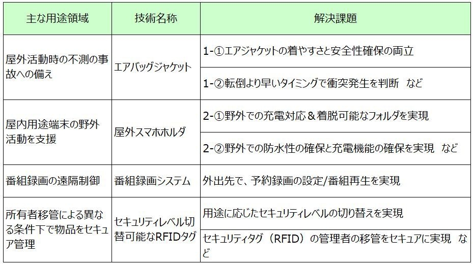 表1 提供できる開放特許による解決課題一覧
