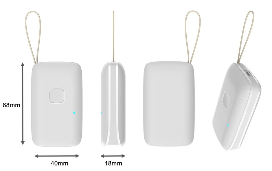 本体の目立つ位置に配置されたボタンは、緊急通報や任意の位置情報送信など、能動的アクションを割り当てることで、デバイスの状態を視覚的に示すLEDインジケータの点灯と組み合わせて様々なサービスへの応用が可能となります。