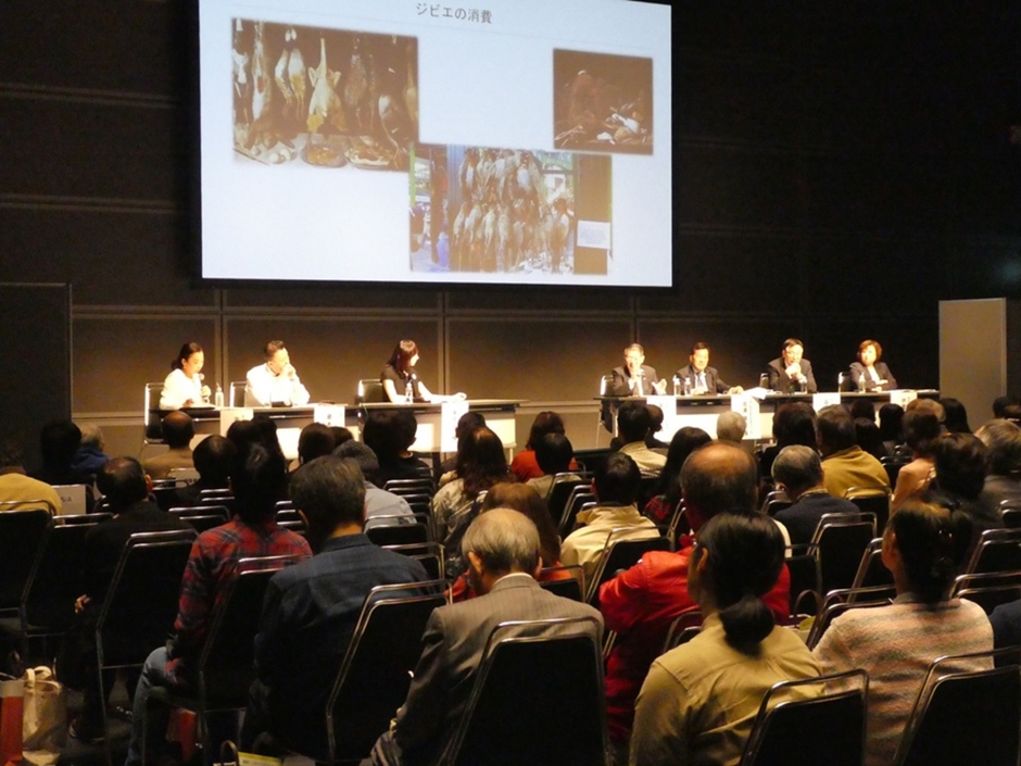 ゲストパネリストに女優で元宝塚歌劇団の紫吹淳さん、パネリストとして東京国際大学・伊藤匡美教授、和歌山鳥獣保護管理捕獲協会・北浦順嗣会長、岩手大学・品川邦汎名誉教授、京都大学・宮崎昭名誉教授、藤木代表理事を迎えてパネルディスカッションを開催しました。