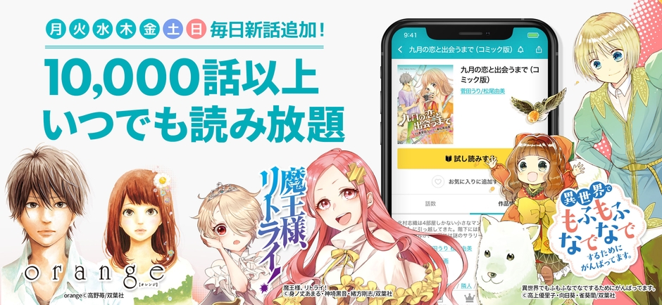 ・会員登録不要で、曜日ごとに追加される人気連載の無料続話や、常時1万以上ある期間限定の無料話、めちゃコミックならではの独占先行配信作品を読むことが可能