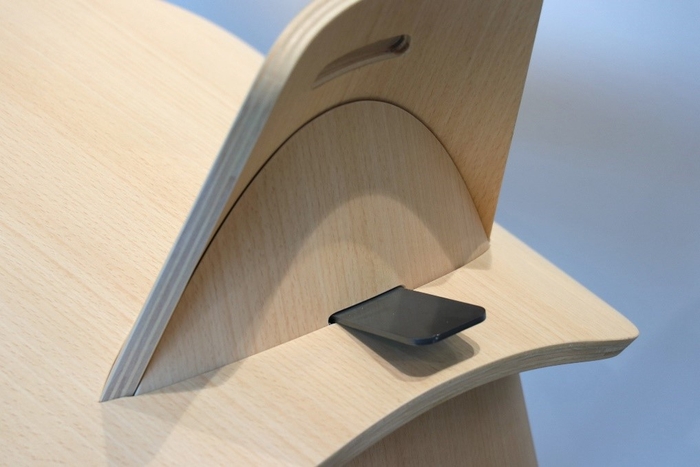 KAGUコンペの受賞作品を町内の家具事業者で実寸化するという案内を受け、とても夢のある素敵な試みだと思い、この度の製作に参加させていただきました。柳澤さんの作品は全てが成型合板で出来ており、その形状やクサビによる固定方法がとても斬新で、第1回目の受賞作品の中でも注目しておりました。そのような作品の製作に携われたことは、会社としても非常に良い経験になったかと思います。