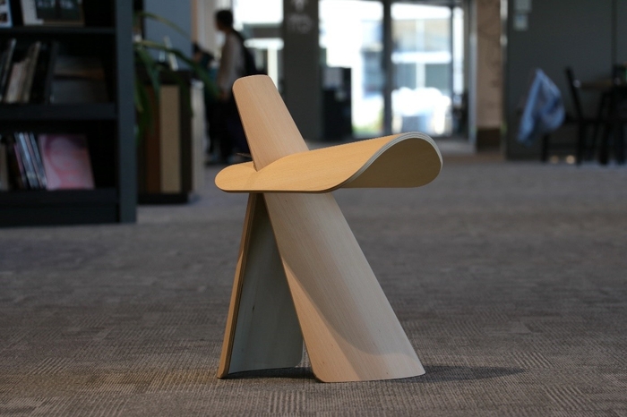 第1回目は「木の椅子」をテーマに募集し、世界の国地域から834件の作品応募がありました。その中から隈研吾賞(最優秀賞)を受賞した作品が「Grasp」です。高い技術を誇る木工事業社がある町だからこそ“実物化し、実際に使える椅子にする”ことを目指し、1年間をかけて完成しました。