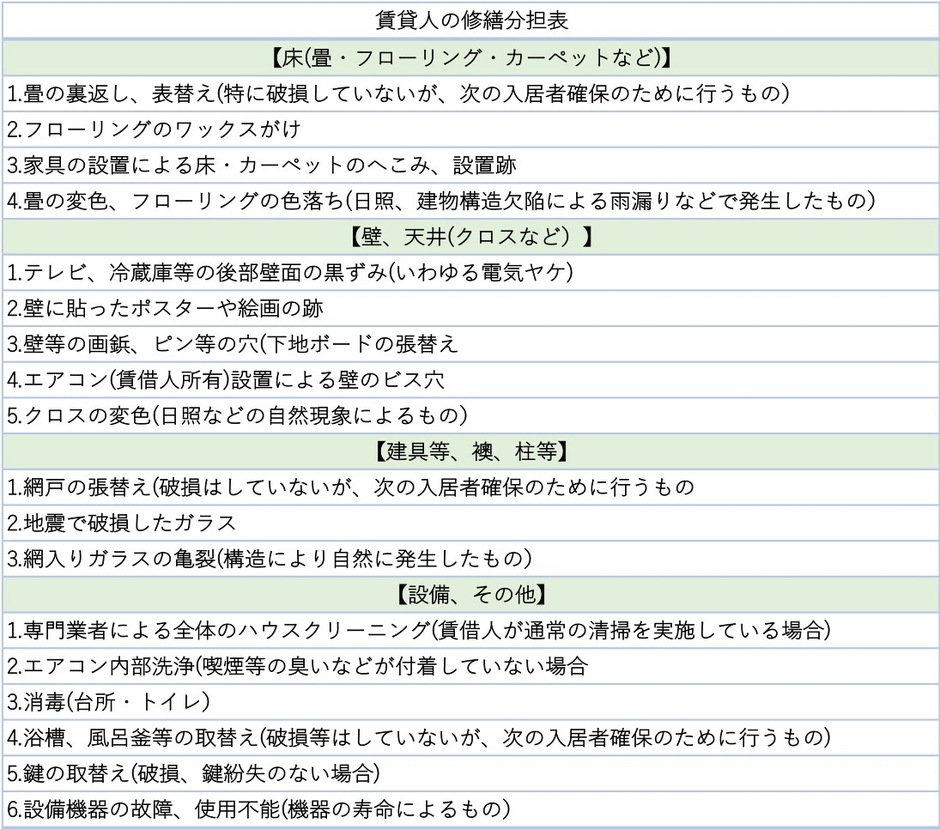 (賃貸人が負担する範囲は下記表参照)