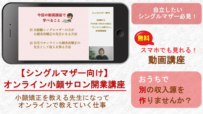 これを記念し、実際に7年間シングルマザーとしてやってきた内容を教材化し「雇われず自分のペースで働ける」新たな収入源を作る方法を解説した、無料動画講座を公開しました。