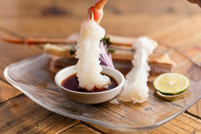 初の東京出店となる「Casava 学芸大学店」の目玉はなんといっても香住から活きたまま運ばれた「活直松葉ガニ・黄金ガニの一匹丸ごと量り売り」。丸ごと買った松葉ガニ・黄金ガニを、部位ごとにおすすめの食べ方、もしくは好きな食べ方で楽しむことができます。