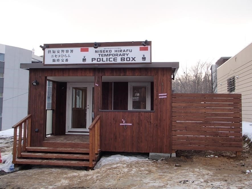ヒラフスキー場の麓にある臨時交番には、観光客が急増する冬季間、訪れる人の8割以上が外国人ということもあり、英語に対応できる警察官が24時間常勤しています。開所期間は12月~翌年3月を予定しています。
