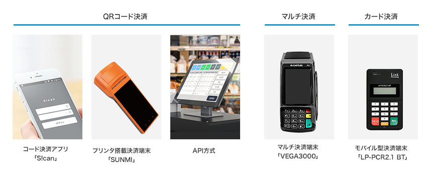 SBPSは、これまで店舗向けにQRコード決済アプリやマルチ決済端末などを提供してきましたが、この度QRコード決済に特化した専用端末「SUNMI」とAPI方式のラインアップを追加しました。事業者は、SBPSの提供する豊富な店舗向け決済サービスのラインアップから、業態やビジネス規模に合わせて最適な提供方式を選択できます。