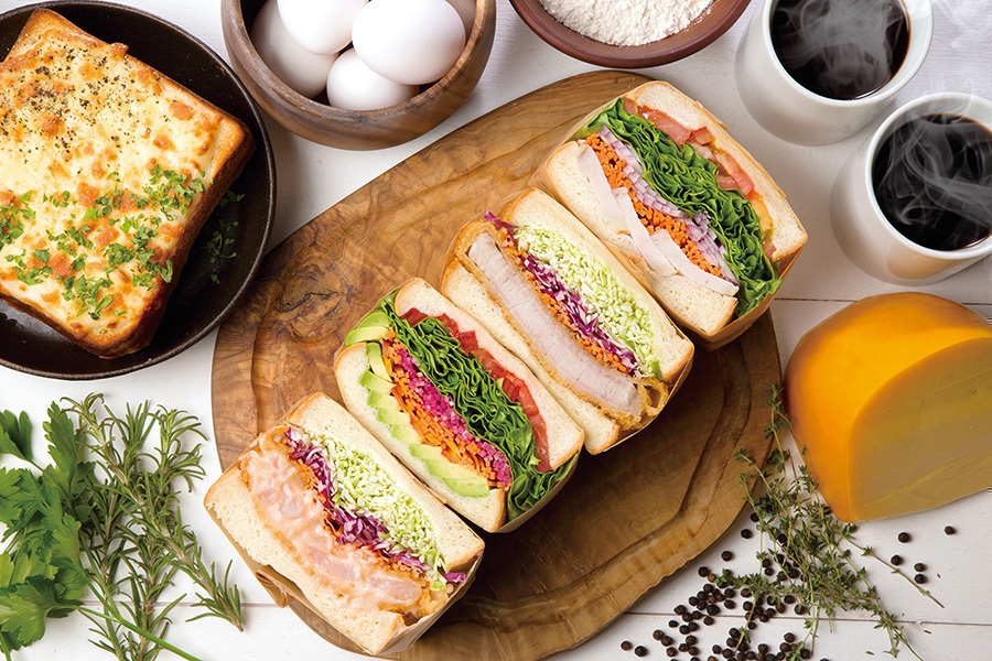 食パンは、店内工房で焼き上げる自家製パンと厳選された素材を使い、注文を頂いてから一つ一つ丁寧に手作りした、作り立てのクラフトサンドイッチを10種類以上ご用意しております。