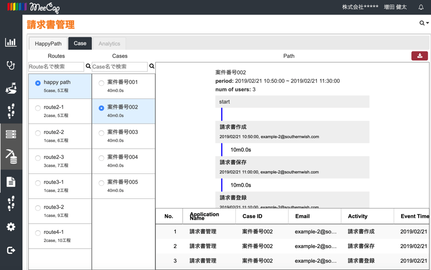 株式会社MeeCap(本社:東京都中央区、代表取締役社長:山田 輝明、以下 MeeCap)は、パソコン操作内容可視化ソフト『MeeCap(R)(ミーキャップ)』のERPデータプロセスマイニング用「HappyPath-ERP」にケース属性機能をリリースいたしました。