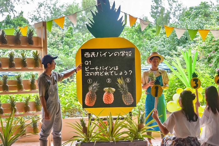 ピーチパインをより一層楽しんでいただくために、期間中、毎日「西表島ピーチパインの学校」を開講します。西表島のピーチパインがなぜ美味しいのか、どんな歴史があるのか、実際にパイン農家に行きレクチャーを受けたスタッフが話します。産地農家だからこそ知るピーチパインの秘密を知ることができます。