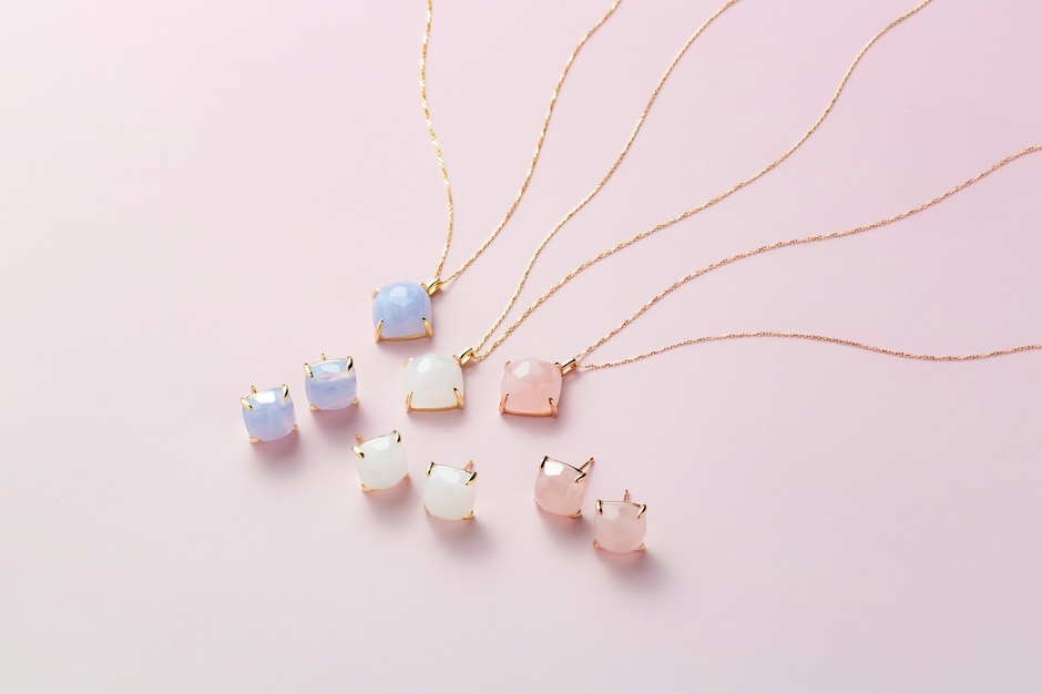 ジェムの新作はミルキーカラーの淡く優しい色合いの天然石がフェミニンな気分をいざなう、春らしいジュエリーとなっている。