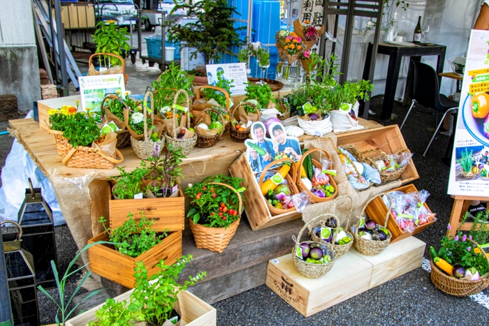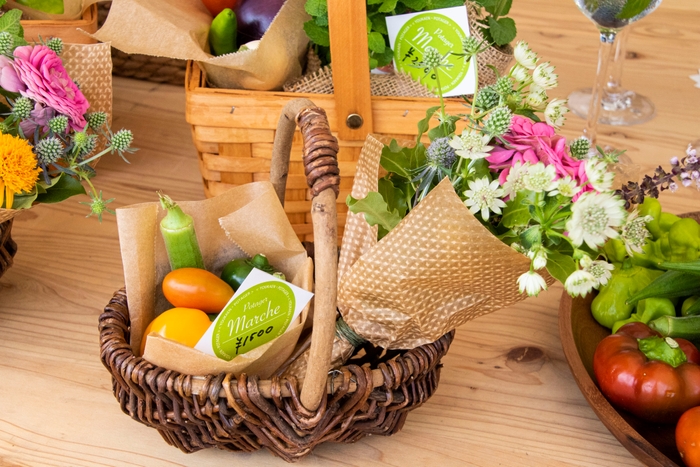 「オーガニックマルシェ」は、長谷川農園さんのとれたて野菜の直売と、ポタジェ風花のミニブーケを販売。