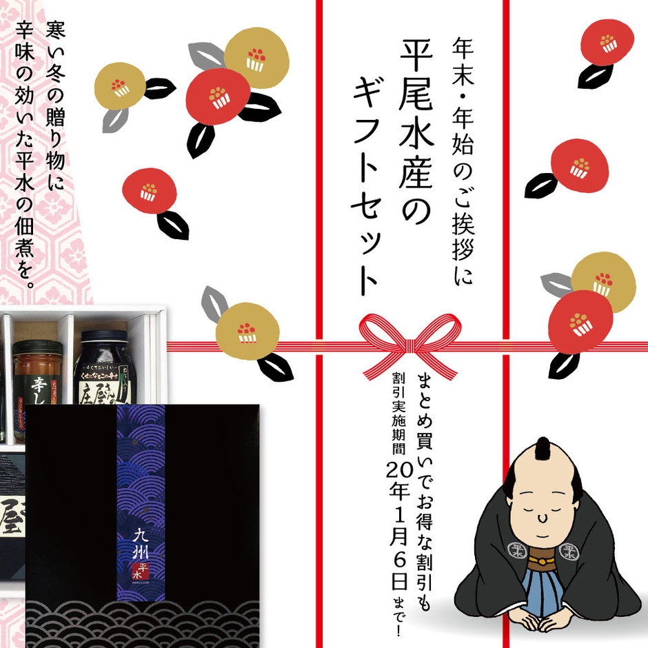 水産物製造加工販売事業を展開する株式会社平尾水産(所在地:福岡県北九州市、代表取締役:灰原 宣明)は、2019年11月8日(金)~2020年1月6日(月)の期間、お歳暮・お年賀のギフトセットのまとめ買い割引キャンペーンを実施いたします。