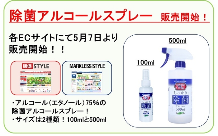 このたび、マスク同様に市場で不足が続いている「除菌アルコールスプレー」(販売予定数100万本)を新たな新型コロナウイルス対策製品に加え、5月7日(木)より順次販売を開始することといたしました。