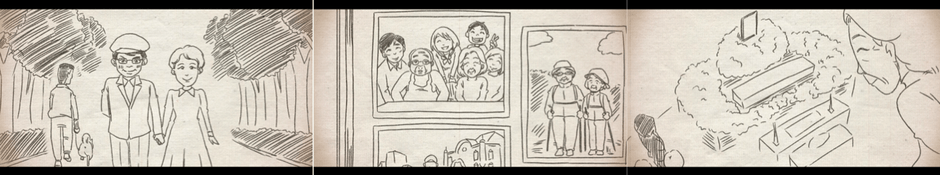 活動的な「終活シニア」を対象に、大切な人に贈る「動画版の遺言」をパラパラ漫画で制作します。近年、相続争いの防止として、急増している遺言作成。遺産の分配のみならず、きちんと自分の想いをのこすことも大事だと考え、「言葉のない遺言」では、遺影とともに、自分の想いをアニメーション作品として大切な人に届けます。