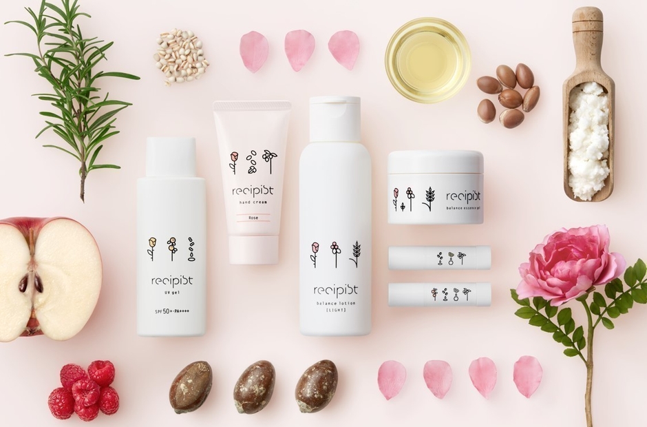 「レシピスト」は化粧水・ジェル状美容液・ジェル状日やけ止め・美容液状日やけ止め・ファンデーション・ボディローション・ハンドクリーム・リップクリームの全27品目27品種を展開。お手頃価格で、「キレイの基礎力ある肌」へ導きます。