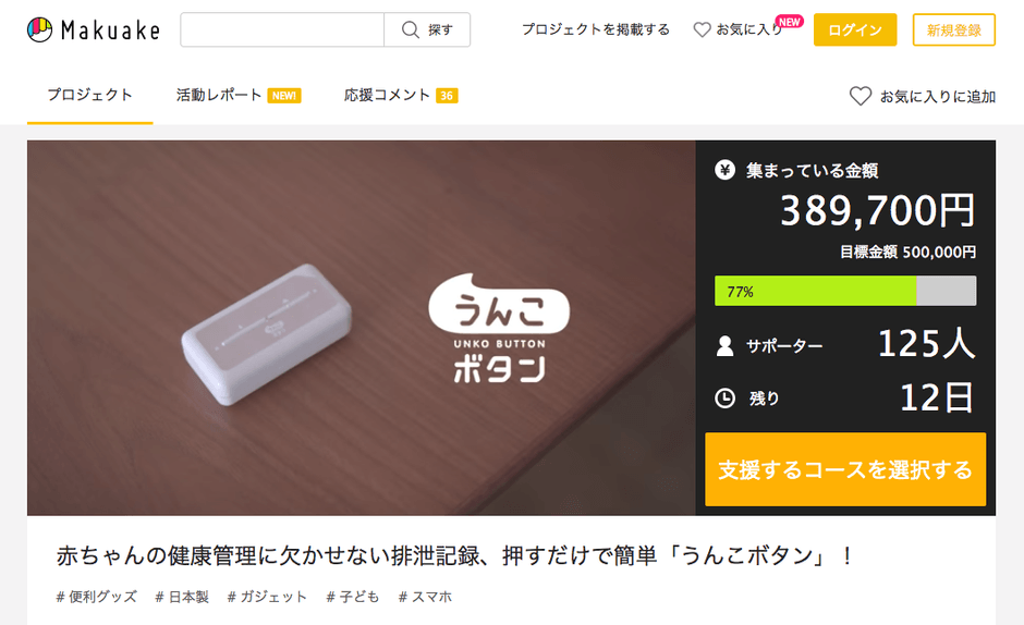 MakuakeプロジェクトのURL https://www.makuake.com/project/unkobtn/
