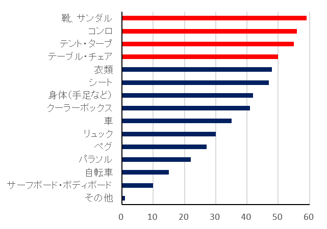 ■海辺のバーベキューで砂だらけになったキャンプ道具を片付ける際、車に砂を持ち込んでしまい、後片付けが大変だった。(40代女性)