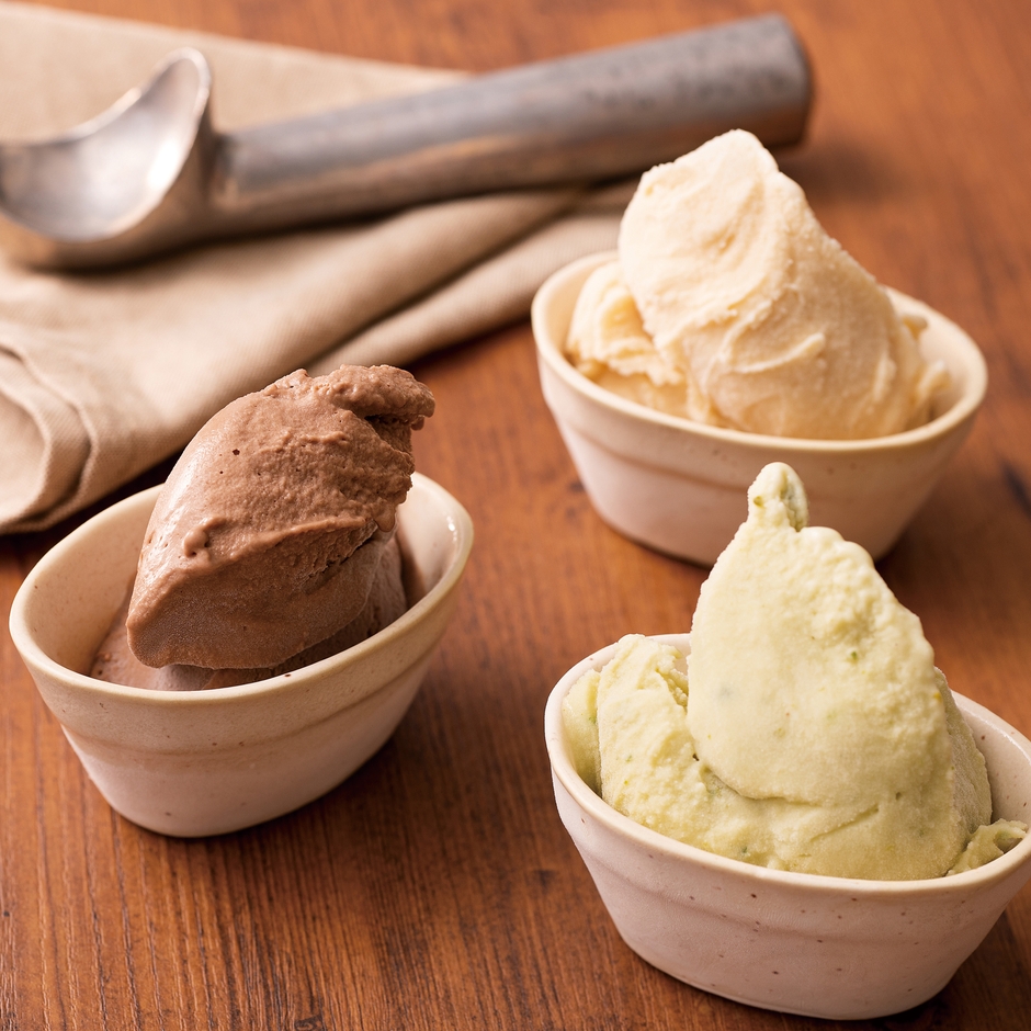 何度も試作を行い、納得のいく7大アレルゲン不使用のバニラ、チョコレート、ピスタチオの3種類のジェラートが完成しました。