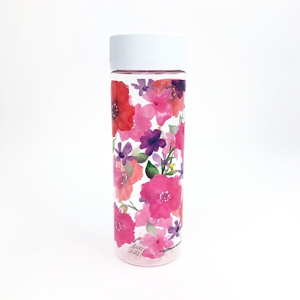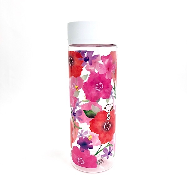 これからの季節にぴったりな華やかで涼しげなクリアボトル。大振りの花々とたわむれるスヌーピーとウッドストックが、花の妖精のようで心ときめきます♡