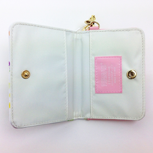 ふんわりとしたやさしい花柄のパスケースは、スヌーピーの型押しが上品でかわいい♡
