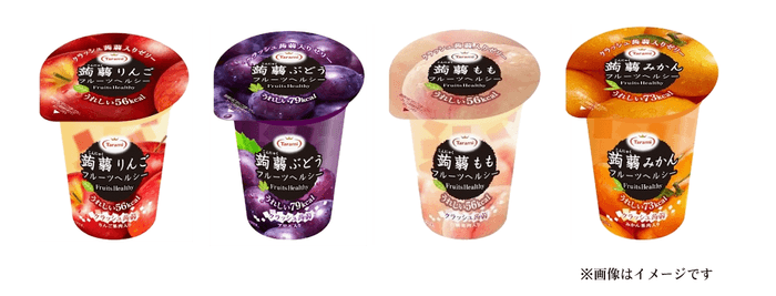 「蒟蒻りんご」、「蒟蒻ぶどう」、「蒟蒻もも」、「蒟蒻みかん」を発売します。