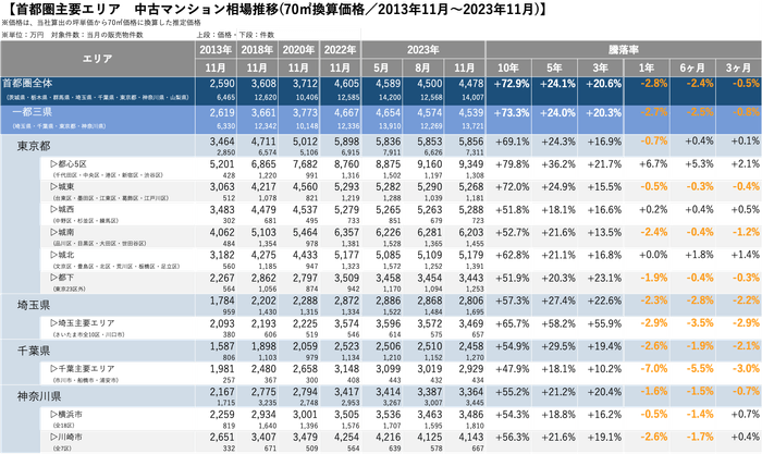 「マンションレビュー」2023年11月 全国中古マンション相場推移を発表