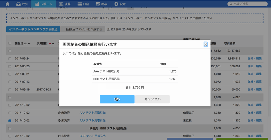 3.情報を確認し、振込依頼を行います。