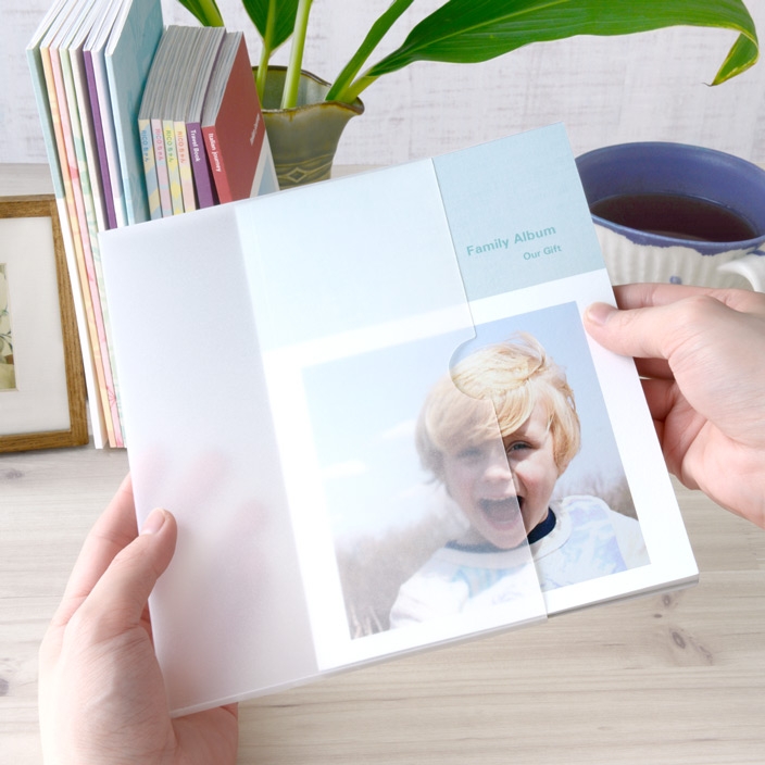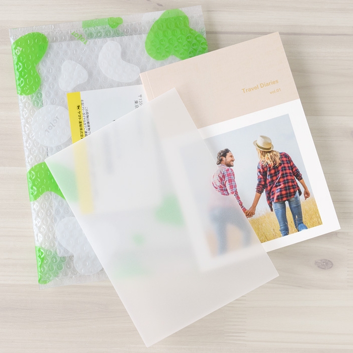 さらに、プレゼントや記念日での利用を想定し、見栄えがよくて保管しやすいクリアケースを1冊ごとに付属します。このケースは、B6サイズ・64ページにジャストサイズのTOLOTオリジナル製品です。