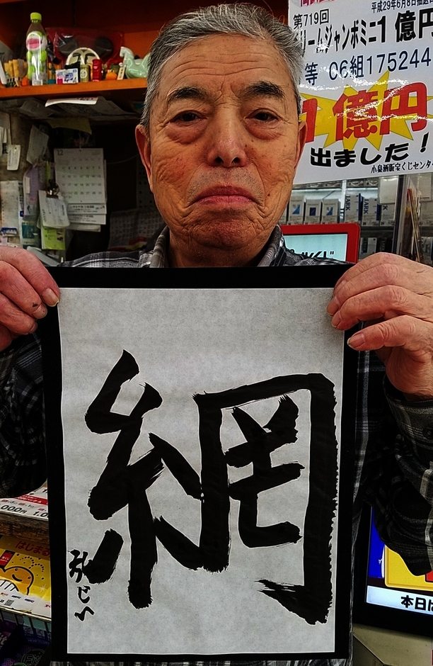 過去2回宝くじ1等を当てた名物売り場の「億爺」が 2018年を象徴する漢字を発表!