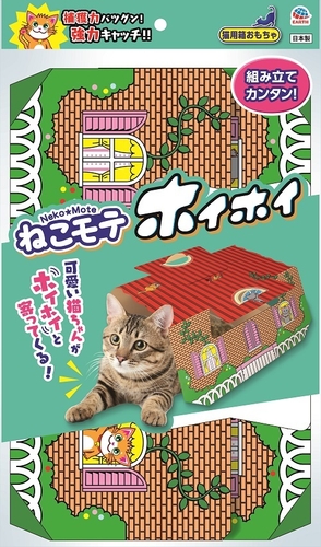 ・『ねこモテホイホイ』は、あの有名な「〇〇ホイホイ」が猫ちゃんハウスに大変身した箱おもちゃです。狭くて暗いところに入りたい猫の習性を生かした製品になります。