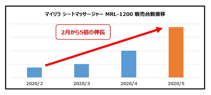 これは、新型コロナウイルス感染拡大防止のための外出自粛期間中に、外で伸び伸びと体を動かすこともままならず、家の中で過ごす時間が増えた方の自宅でできるマッサージへのニーズが高まったことから、寝姿勢で首から腰まで気軽にマッサージができるシートタイプのマッサージャー「MRL-1200」への注目が高まったものと見られます。