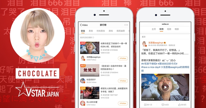 VstarJapanが中国進出支援を手掛けるYouTuber/Artistあさぎーにょが中国最大のSNS「Weibo(微博)」において全体デイリーランキング1位を獲得