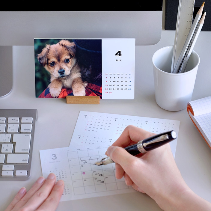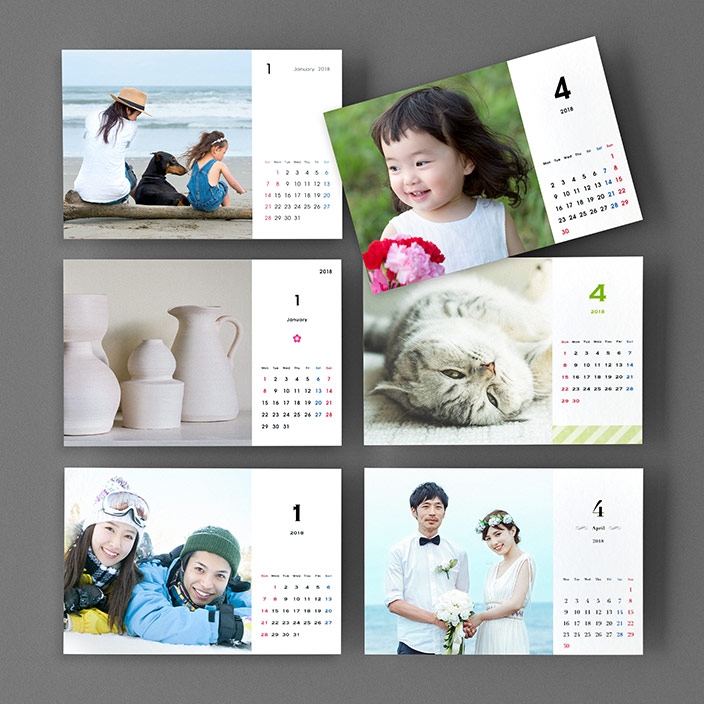 写真が入る表面のカレンダーは、1月はじまり(2018年1月〜2018年12月)と4月はじまり(2018年4月〜2019年3月)のいずれかを選べます。