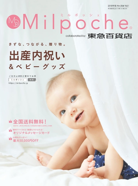出産内祝いギフト&ベビーグッズの通信販売と妊産婦さんへの情報サービス提供を行う株式会社メリックス(本社:大阪市北区、代表取締役:岩永 弘志)は、株式会社東急百貨店とコラボレーションした出産内祝いカタログ『ミルポッシェ』の2018年版を発行いたしました。