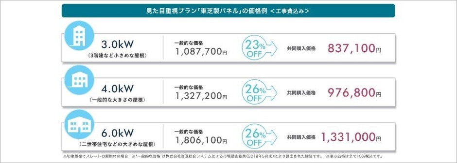 本共同購入で参加登録者に提案する太陽光発電システムプランはいずれも