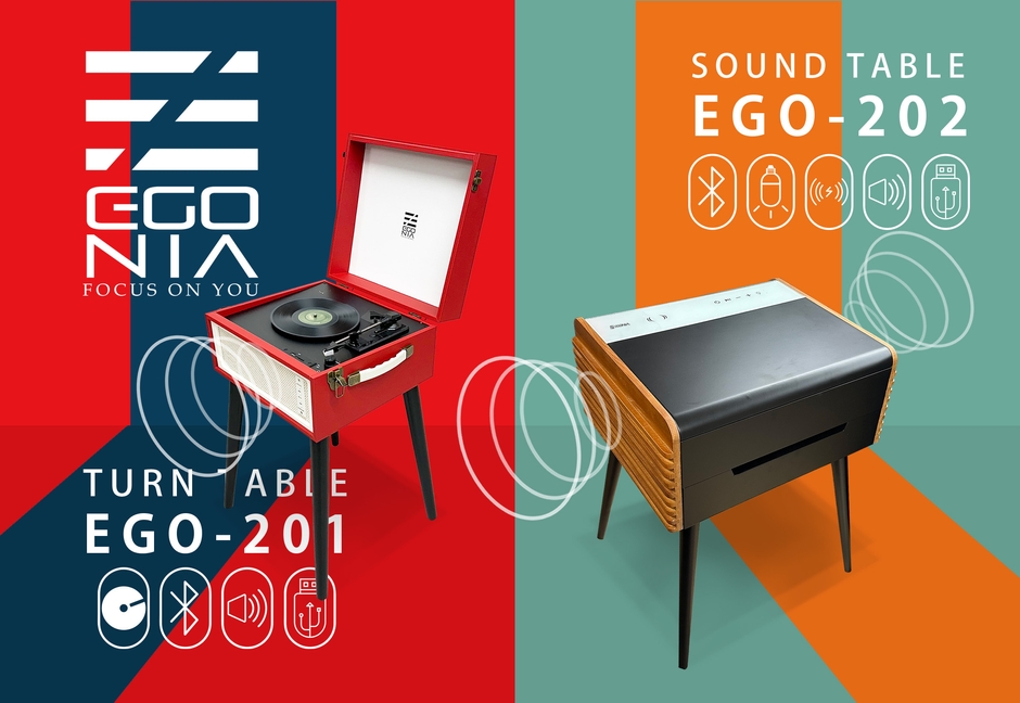 第一弾として、オーディオインテリアのターンテーブル(EGO-201)とサウンドテーブル(EGO-202)を同時リリースいたしました。