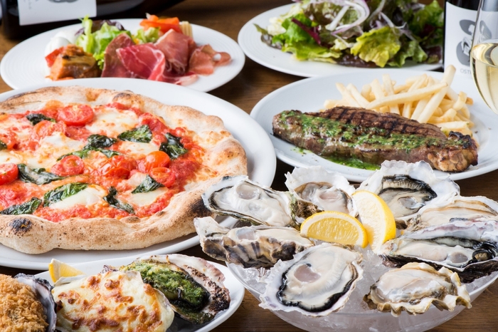 生牡蠣、調理牡蠣、前菜(冷菜・温菜)パスタ、ピッツァ、メイン料理、デザート