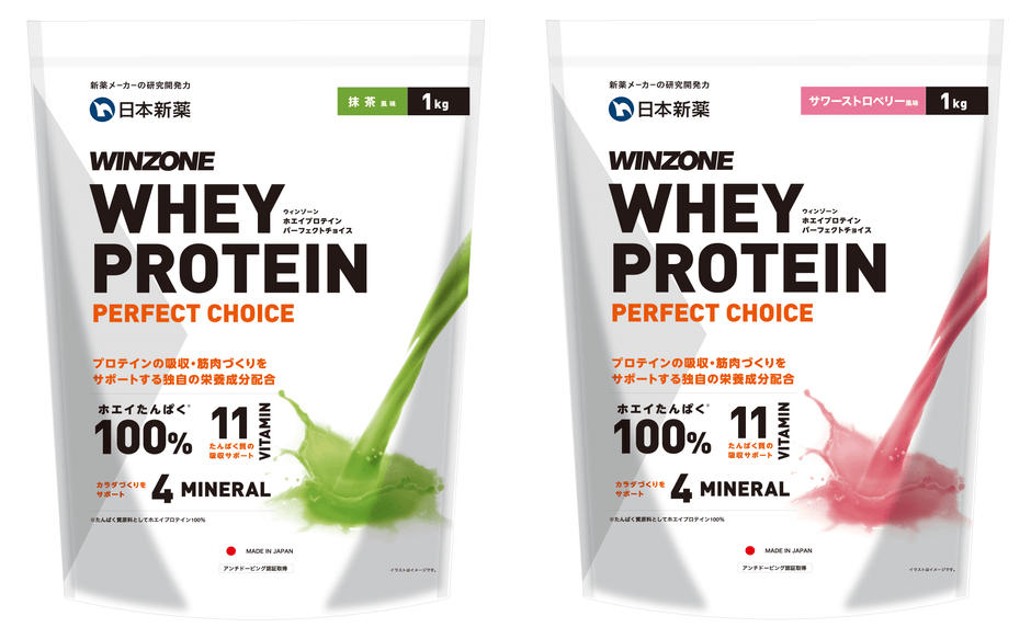 日本新薬株式会社(本社:京都市南区、代表取締役社長:中井 亨)は、スポーツサプリメント「WINZONE」シリーズより、「WINZONE WHEY PROTEIN PERFECT CHOICE(ウィンゾーン ホエイプロテイン パーフェクトチョイス)」の「抹茶風味」、「サワーストロベリー風味」を2021年8月27日(金)より発売します。