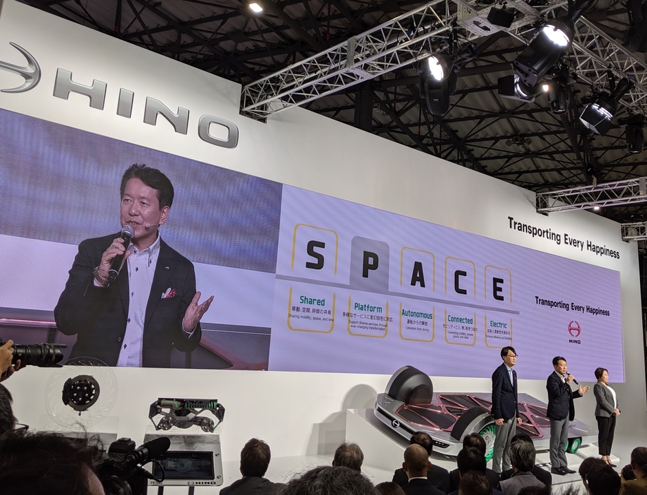 東京モーターショー2019にて日野自動車が イスラエル企業REE社の技術を搭載した コンセプトモデル、HINO FlatFormerを発表
