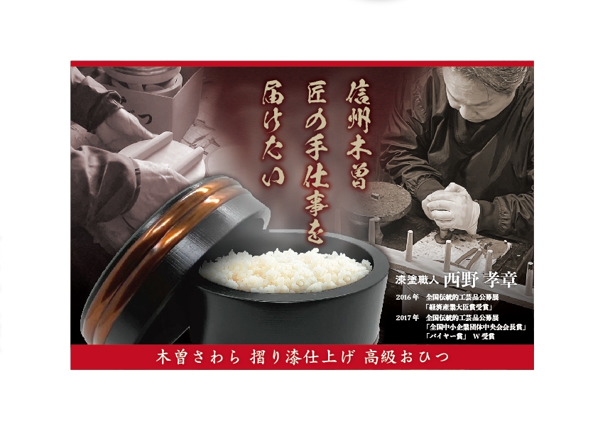 長野県にて工芸品販売を行っておりますprizeJAPAN(所在地:長野県松本市、代表:矢口 武夫)は、木曽の天然木曽さわらのおひつに摺り漆を施した「うるし塗りおひつ」の先行予約販売をクラウドファンディングサイト「CAMPFIRE」にて2022年6月1日から2022年7月15日まで期間限定で開始しております。