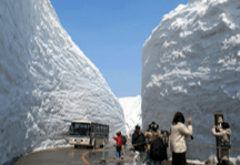 立山黒部アルペンルートは、標高3000m級の山々が連なる北アルプスを貫く世界でも有数の山岳観光ルート。なかでも「大谷」と呼ばれる地点は地点的に吹きだまりとなり、その高さはなんと20mに迫ることもあります。4月15~6月22日の期間は、「立山黒部・雪の大谷フェスティバル」が開催され、雪の壁の間を歩く「雪の大谷ウォーク」「雪の回廊ウォーク」をご体感いただけます。アクセス:扇沢駅までホテルより車で約50分