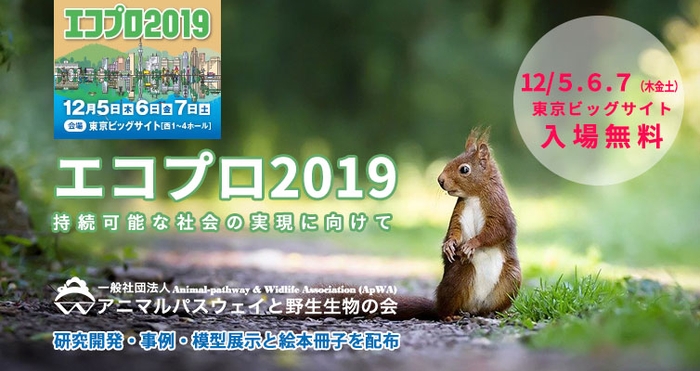 『一般社団法人 アニマルパスウェイと野生生物の会』(所在地:東京都新宿区、代表理事:大竹公一)は、「エコプロ2019」(東京ビックサイト、2019年12月05日~12月07日)に出展します。エコプロ展は今年21回目を迎えるアジアを代表する環境総合展です。ブースでは、「アニマルパスウェイ」の模型、パネルやエコ製品の展示や樹上性野生動物の利用状況のビデオなど紹介します。